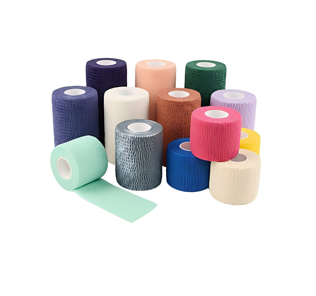 - Cohesive self-adhering structure: sticks to itself, not skin or hair